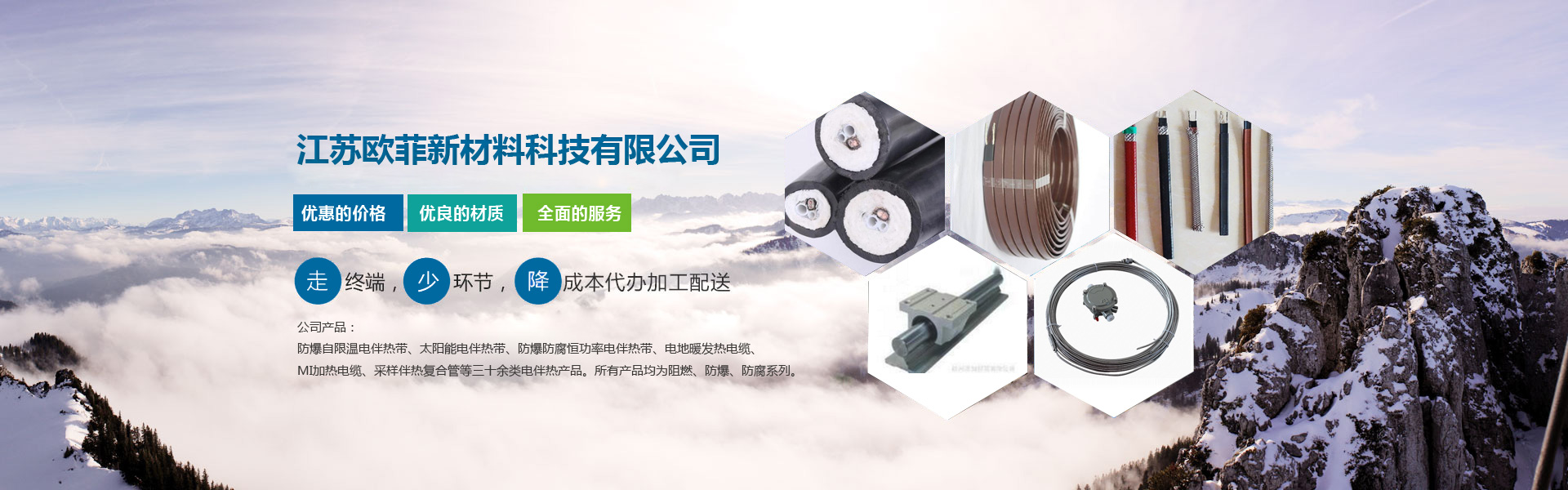 江蘇歐菲新材料科技有限公司是集發(fā)熱電纜、自限溫伴熱帶,恒功率電伴熱研發(fā)、生產(chǎn)、銷售及服務(wù)于一體的電伴熱,發(fā)熱電纜生產(chǎn)廠家。是國(guó)內(nèi)同時(shí)掌握電伴熱帶和發(fā)熱電纜核心技術(shù)的企業(yè)。  我公司擁有電伴熱工程能力,完滿地建立起了從為客戶提供完整的設(shè)計(jì)方案、到提供優(yōu)質(zhì)產(chǎn)品、再到安裝、調(diào)試和售后維護(hù)等服務(wù)的營(yíng)銷體系。本著顧客至上和精益求精的發(fā)展理念,我們與所有顧客朋友之間搭建的友好合作橋梁日益牢固,與所有新老顧客朋友之間“共創(chuàng)伴熱產(chǎn)品、攜手共贏服務(wù)中國(guó)市場(chǎng)”的輝煌藍(lán)圖也正在以厚積薄發(fā)的勢(shì)態(tài)壯闊鋪就! ... [查看更多]